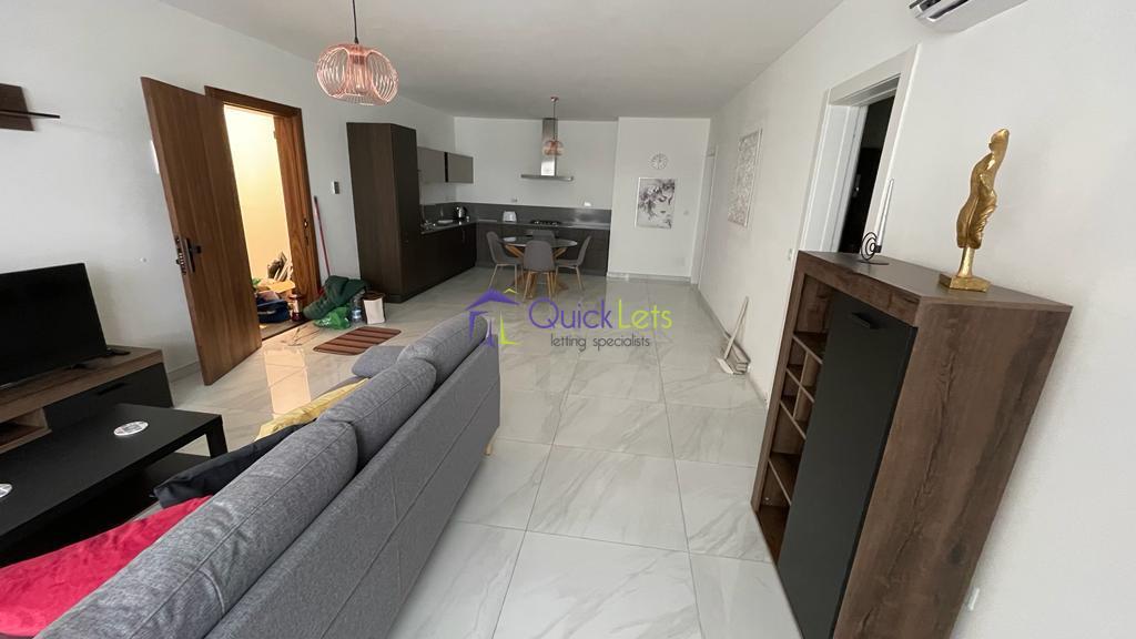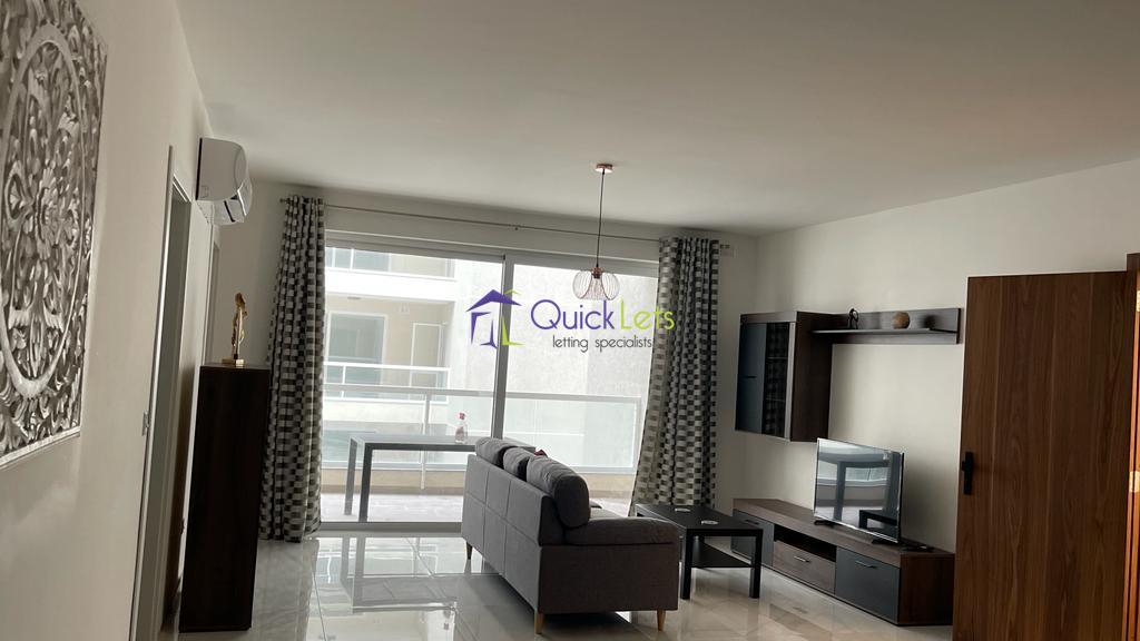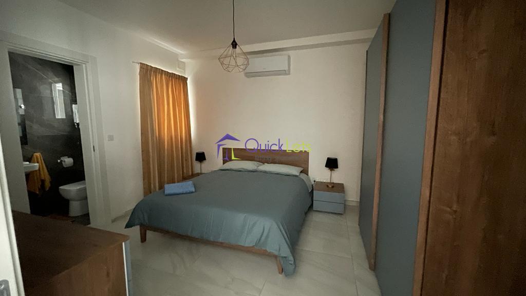 QAWRA- Two bedroom apartment in Qawra. The apartment comprises of two bedrooms, two bathrooms, kitchen, living, dining area, terrace. The apartment is fully furnished and airconditioned, with washing machine and LCD TV.
