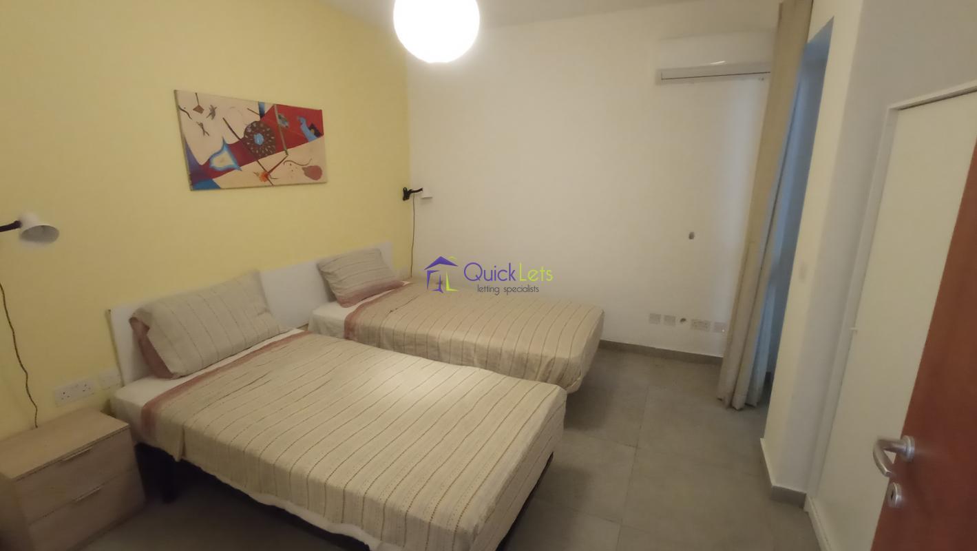 This three-bedroom maisonette located in the tranquil central area of Qawra is an ideal property. It is near to schools and all amenities, as well as excellent transport links. With an open-plan living and dining area, a separate kitchen, two double bedrooms, a master bedroom with en suite, a main bathroom, a box room, and a small backyard, this maisonette is an excellent choice. It is fully air-conditioned, well-maintained, and worth viewing.