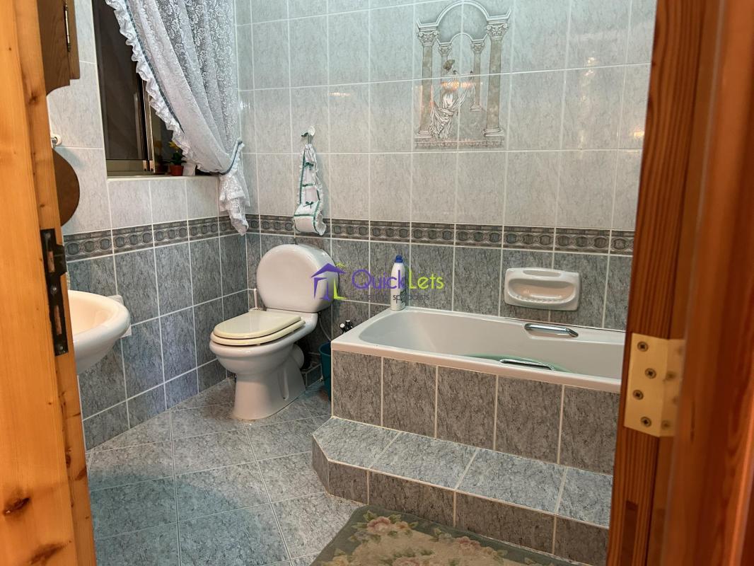 This apartment has three bedrooms. The main bedroom has an ensuite. The second bedroom has two single beds, whilst the third bedroom has a single bed. There is one other bathroom, two balconies, and a yard. This apartment boasts a large kitchen/ living room and combined sitting room.