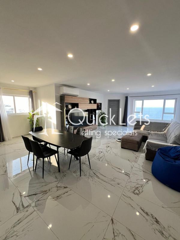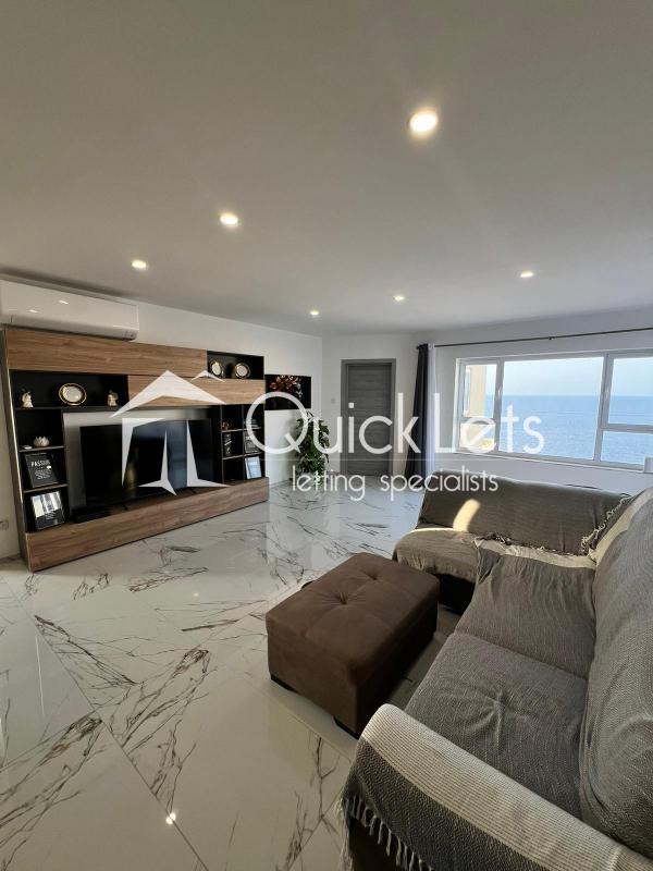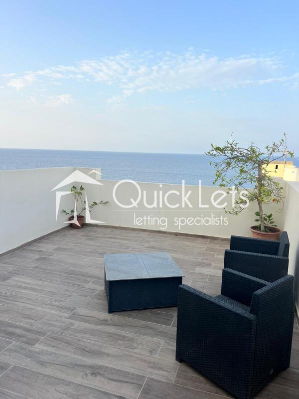 XGHAJRA | A Brand new (2024) stunning penthouse that is finished to high standards. The property is situated on the seafront, a quiet residential area. It is just a few minutes away from the Shoreline, where one will find all amenities including a market, shops, restaurants, and so on. The property comprises a spacious open plan with marble flooring, including a fully equipped kitchen, dining area, living area, and a front terrace with breathtaking sea views. It has a main double bedroom with an en suite, a spare bedroom with a double bed, and a main bathroom.