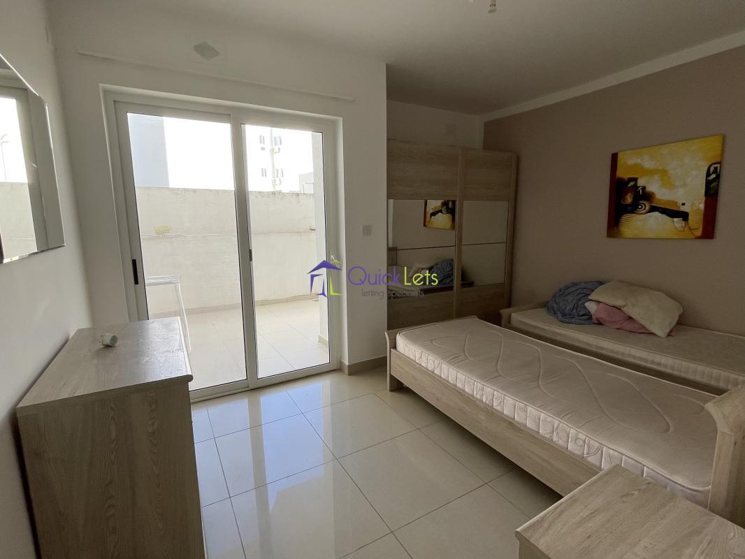 SWIEQI - Bright spacious finished and furnished three bedrooms apartment in the heart of Swieqi close to all amenities. Large open-plan kitchen/living dining area with a lovely front balcony, main bedroom with ensuites, two bedrooms with two single beds, and a cozy backyard ideal for entertaining. AC in the main bedroom and living room.