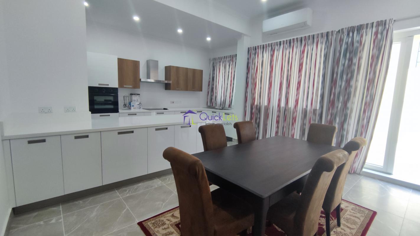 The ground floor comprises an open-plan living, dining area, and kitchen area furnished with modern appliances and fixtures. On this floor, there is also a guest bathroom. On the first floor, there are two bedrooms, one of which has the traditional Maltese balcony (Gallarija), each with plenty of storage space and natural light. These bedrooms have an en-suite bathroom. The top floor houses the main bedroom with an en-suite bathroom, a dressing room/walk-in wardrobe, and a spacious terrace with stunning views of the surrounding area.