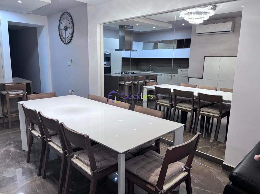 MGARR - Lovely three-bedroom apartment situated in a great location of Mgarr. The property comprises an open-plan Kitchen/Living Dining. The kitchen is fully equipped with all the latest appliances and a breakfast bar. The living room is full of light with a balcony enjoying side country views, an electric reclining sofa, and LG 55-inch TV. Dining room with extendable table seating eight. The main bedroom includes an en suite shower, spacious wardrobe, and walk-in, TV. Second bedroom with double bed (optional two singles) and desk. The third single bedroom can be converted into an office. Back balcony with canopy and laundry, guest bathroom with bathtub. Air-conditioning and WIFi in all rooms.