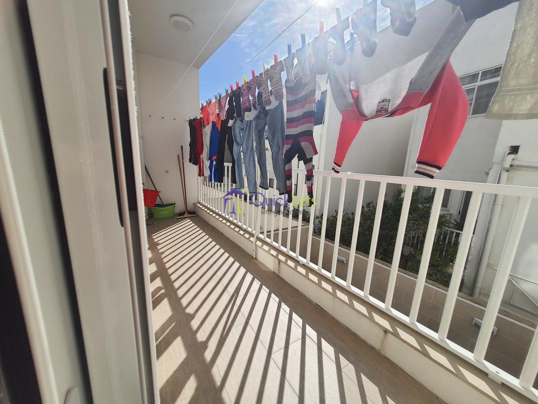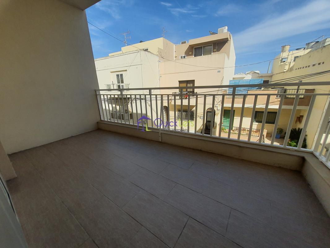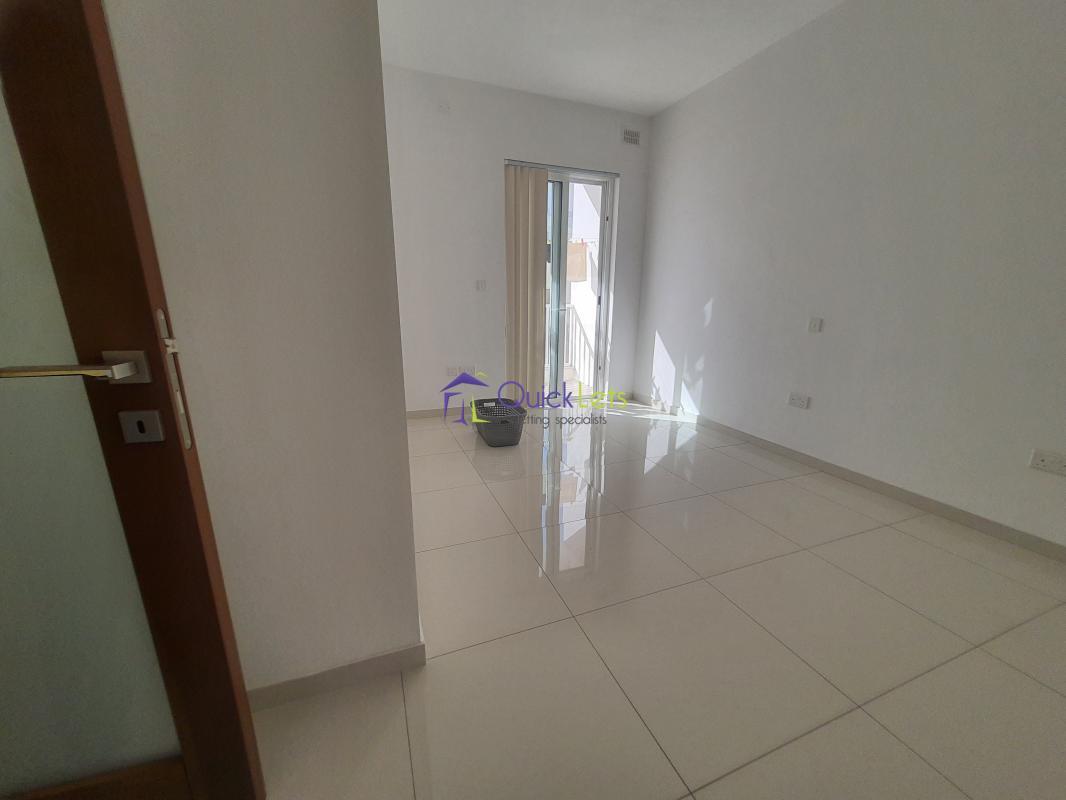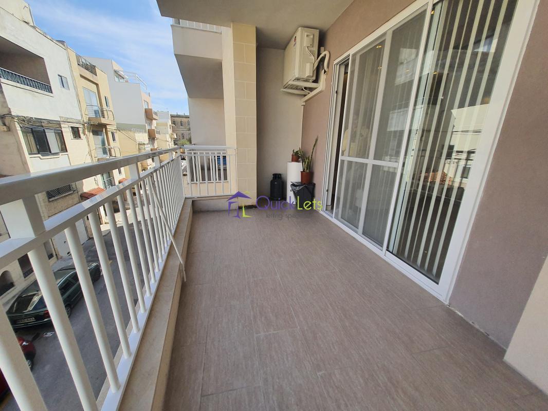 SANTA VENERA - Centrally located, close to all amenities. Comprising a spacious living area that leads onto a large balcony, a fully equipped new kitchen (no dishwasher), two bedrooms (one double and one single), two bathrooms, another room that may be used as a store room/laundry room, and another large balcony at the back. There is air conditioning in the living area and the main bedroom. An optional one-car street-level garage is also available.