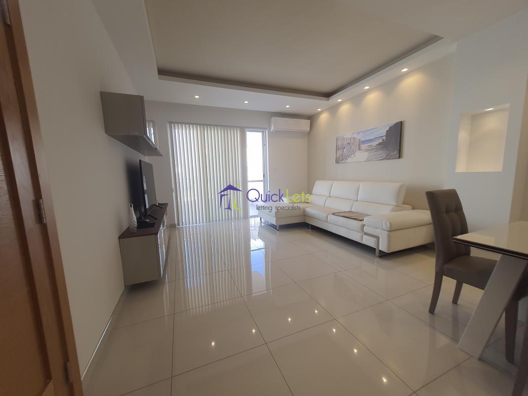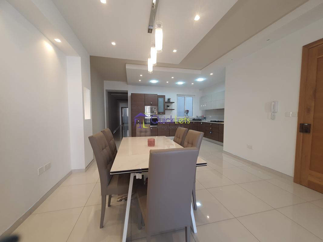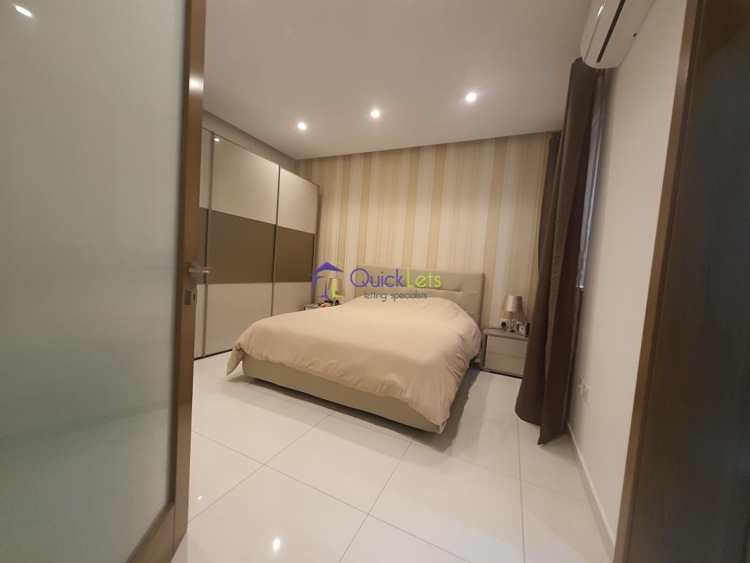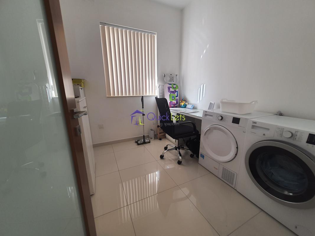 SANTA VENERA - Centrally located, close to all amenities. Comprising a spacious living area that leads onto a large balcony, a fully equipped new kitchen (no dishwasher), two bedrooms (one double and one single), two bathrooms, another room that may be used as a store room/laundry room, and another large balcony at the back. There is air conditioning in the living area and the main bedroom. An optional one-car street-level garage is also available.