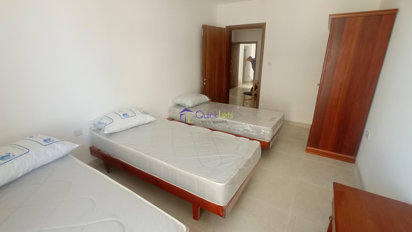 QAWRA - Brand new (2023) three-bedroom squarish layout apartment, located in a quiet area of Qawra, close to the seafront and all daily amenities. The property consists of a large open-plan kitchen/living/dining, three bedrooms, and two bathrooms equipped with a shower. Every bedroom is equipped with three single beds, a large wardrobe, and a good-sized balcony. The property is fully equipped and ready to move in. The property is in a modern block of apartments, served with a lift.