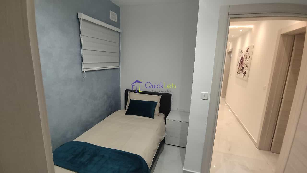 TA' XBIEX - Here you find an elevated, brand new (2023) maisonette in a very quiet and nice area of Msida/Ta'Xbiex, just a corner away from the promenade and restaurants. This maisonette consists of an open plan, where a brand-new kitchen, fitted with all appliances including a dishwasher, is on your left, and the living space with a sofa bed, a large TV, and a large A/C unit, is on your right. Further on in front of you is a corridor that leads to all bedrooms and a family bathroom. The first doors on your left lead to the first bedroom fitted with the double bed, a large wardrobe, and A/C, with the window looking to a small internal yard. Further on, on the same side, there is a door to the family bathroom. At the end of the corridor, there are two doors. The left one leads to the master bedroom, with the double bed, a large wardrobe, an ensuite, and a yard, and the right door leads to the third bedroom fitted with a single bed, wardrobe, and a desk. In front of this maisonette, there is a large private terrace with a bench and a table to enjoy summer evenings.