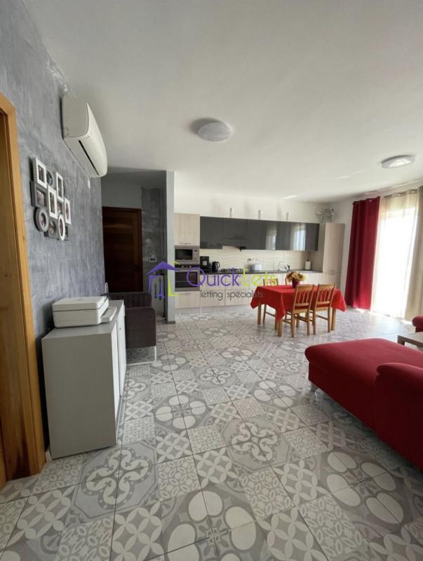 QAWRA - Here we found a modern and spacious two-bedroom apartment located close to all amenities. The property comprises an open-plan/kitchen/ living/ dining area, two bedrooms, and two bathrooms. Both bathrooms have underfloor heating. The property is fully equipped and air-conditioned. There is a large balcony with a nice town view. Ideal for a family. Worth a view!