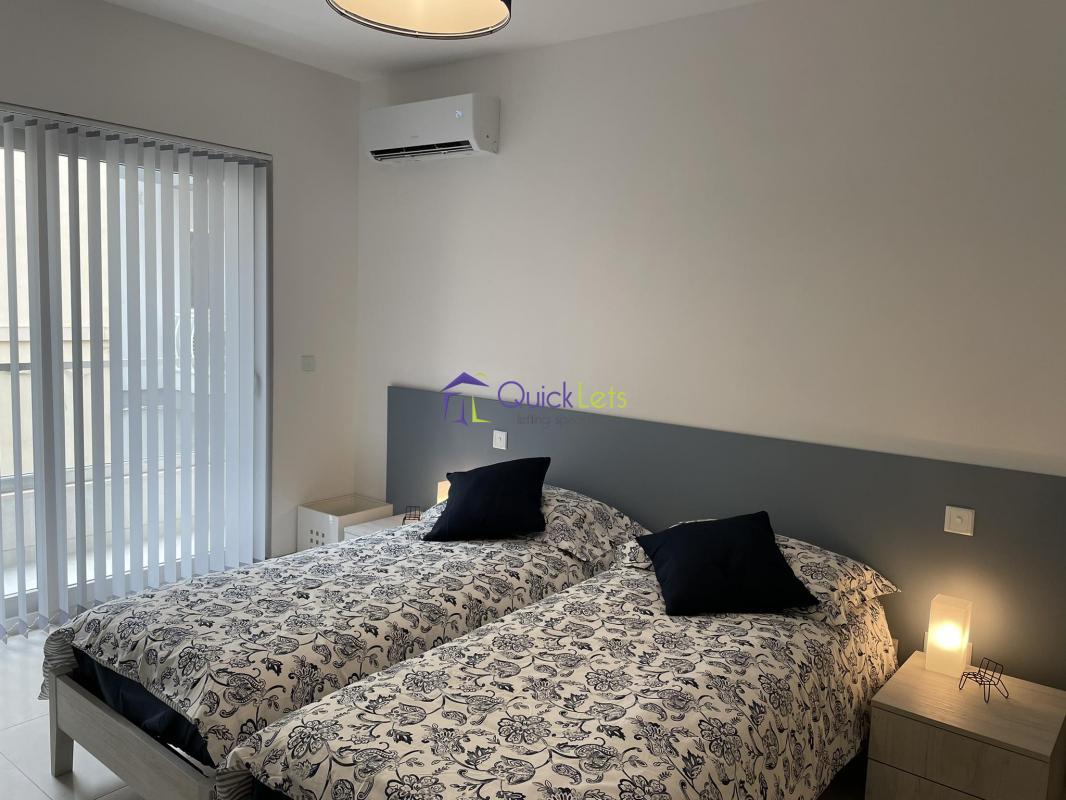 San Gwann - A first-floor two-bedroom brand new (2023) apartment situated in the central area of the village. The layout consists of a spacious lounge area with a sofa and arm-chair, a fully equipped kitchen and dining area with a good-sized front balcony, a master bedroom with a shower en-suite, a spare bedroom has twin beds and the excess to the front balcony, a utility room with washing machine, tumble dryer, the main bathroom with a bathtub. This property comes fully furnished and fully air-conditioned. This apartment is equipped with a smart LCD TV, dishwasher, fridge/freezer, microwave, oven, electric hob, hood, and nets in all windows.