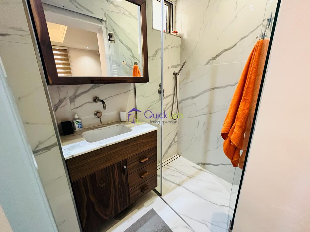 This luxury one-bedroom elevated maisonette comprises an open-plan kitchen, a living-dining area with an LCD TV, and a balcony overlooking the seafront. It also has a double bedroom with an ensuite, a study that can be converted into a single bedroom, and a bathroom. This property is close to restaurants, shops, nightlife, etc.