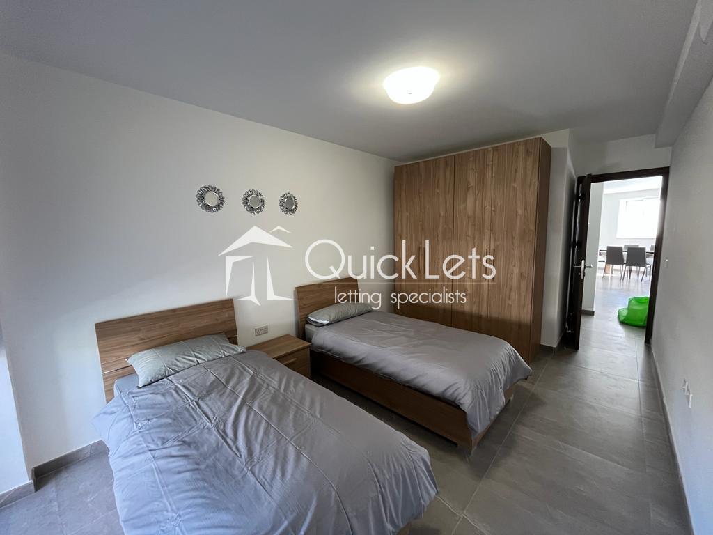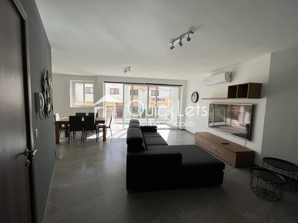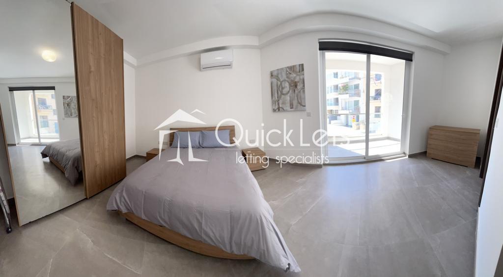 SWIEQI - This fully equipped, air-conditioned apartment is brand new, never lived in, and is situated within a modern building at a prime location. The layout of the apartment includes an open-plan kitchen, living, and dining area that opens up to a spacious front balcony. It boasts three generously sized bedrooms, with the master bedroom featuring a double bed and an en-suite bathroom, another double bedroom, and two single bedrooms, each one of which has its own private balcony. The apartment also includes a well-proportioned main bathroom and a utility room.