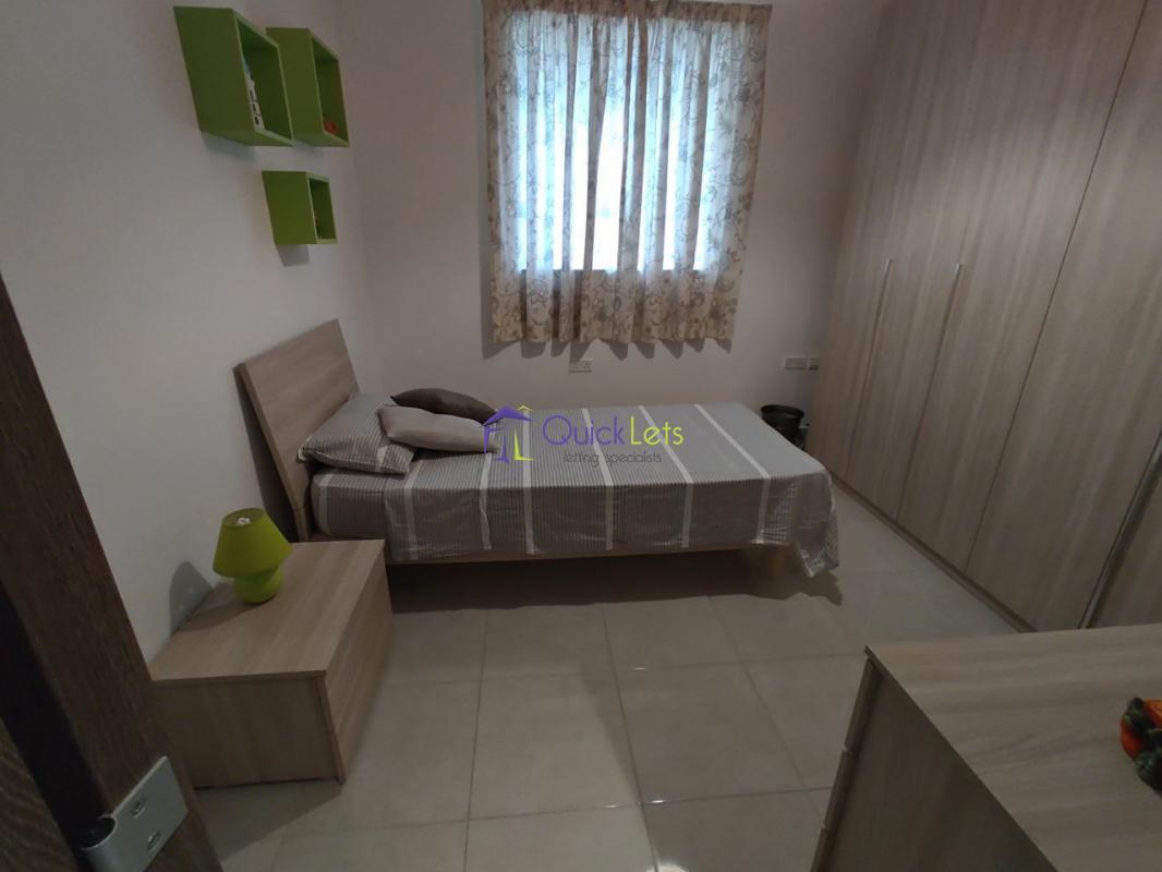 ZABBAR - Modern and bright three-bedroom apartment located in a quiet area of Zabbar. The layout comprises an open plan, kitchen/ dining and living area, a main double bedroom with ensuite, a spare single bedroom, a third bedroom with two single beds, and a main bathroom.