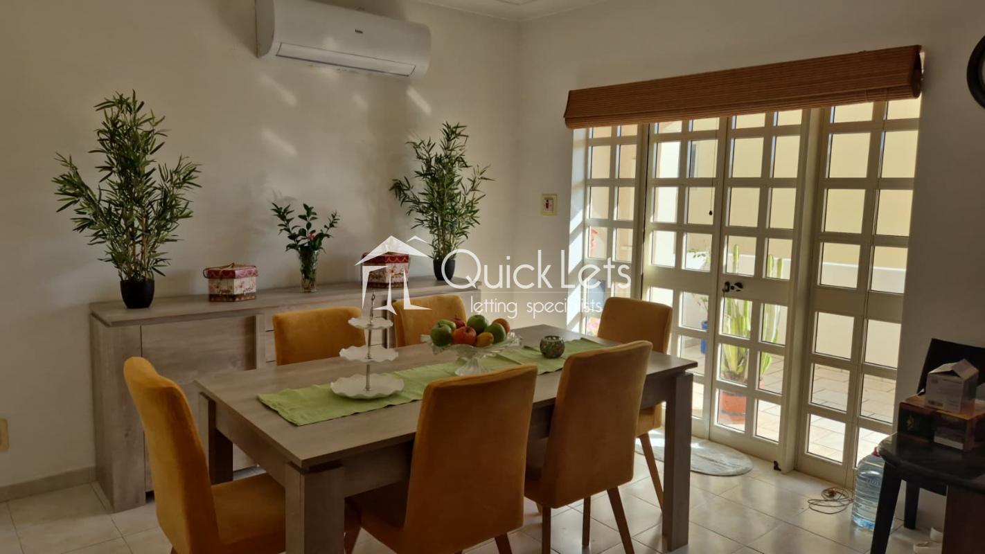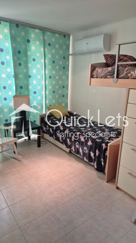 MARSASKALA - A three-bedroom + study room townhouse situated in the area of a prestigious complex in the designated area of Ta' Monita in Marsaskala. The layout of the ground floor consists of an entrance area, a main bedroom with a double bed, a walk-in wardrobe and a spacious backyard, a spare bedroom with a bunk bed and access to the yard, a second spare bedroom with a single bed, a main bathroom with a bathtub, and a utility room with a washing machine. The layout of the first floor consists of a kitchen/dining area with a good-sized back terrace and outdoor furniture, a sitting area with a front balcony, a study room, and a spare bathroom with a shower. This property comes fully furnished and air-conditioned in the two bedrooms and the dining area, with insect screens. This house is equipped with a television, washing machine, fridge/freezer, hob, hood, oven, and dishwasher.