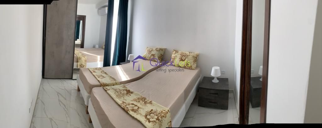 SLIEMA - A Beautifully highly finished two-bedroom apartment located within walking distance from the sea. The property comprises an open plan with a kitchen living dining area, with a balcony overlooking a garden. two bedrooms, two bathrooms (one ensuite) with a balcony conjoining the bedrooms. The property is fully air-conditioned and includes a lift.
