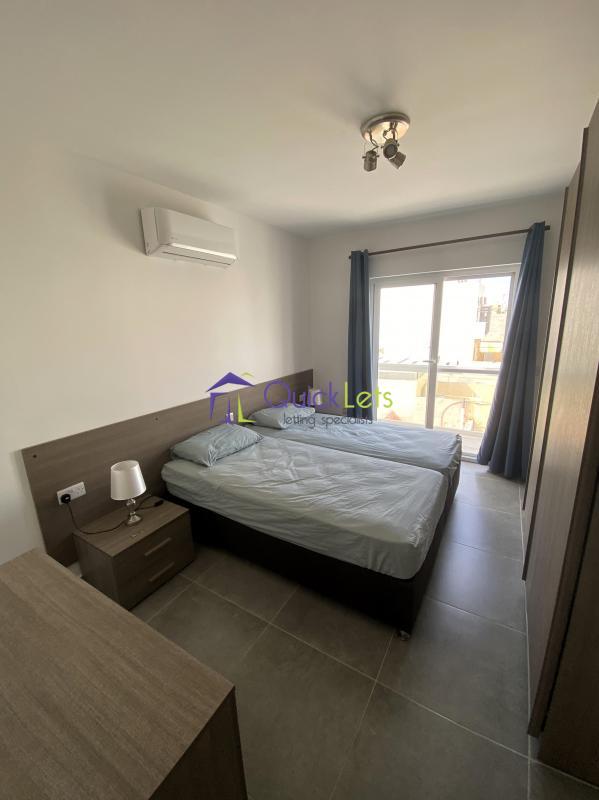 Here we find a two-bedroom and two-bathroom apartment consisting of an open-plan kitchen, dining, and living area leading onto a balcony. All rooms are fully equipped and air-conditioned. The main bedroom has an en suite and another balcony. Worth a view