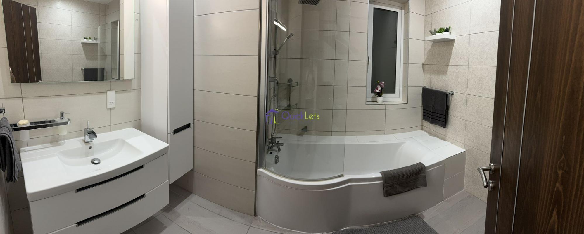 The apartment features three generously sized bedrooms, designed to accommodate various needs. Two of the bedrooms are doubles, offering ample space and comfort, while the third bedroom is furnished with two single beds that can easily be converted into a double, providing flexible living arrangements. The master bedroom comes with a sleek en-suite bathroom, adding a touch of luxury to your daily routine. Additionally, there is a main bathroom, equally stylish and functional.