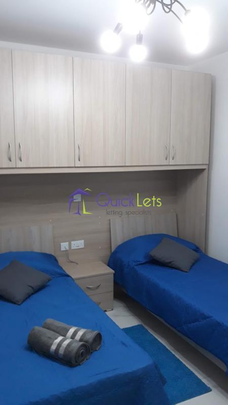 MSIDA - Ground-floor Maisonette with own entrance, for Long Let. Modern and highly finished with two bedrooms (one en suite). The single beds are joined together, with a mattress protector, and the gap between them is filled with a special foam (so a full double bed).