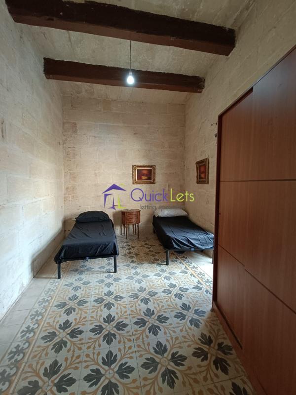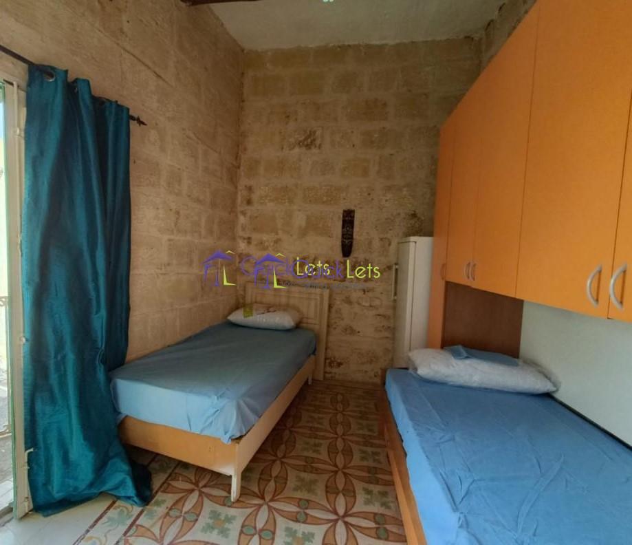 ZABBAR - Two-bedroom townhouse in Zabbar close to all amenities. This consists of the ground floor kitchen/living with a fully equipped, LCD TV, washing machine, AC, and all the necessaries that you need., and there is the main bathroom with a shower. On the first floor, you will find two bedrooms with two single beds both of them with balconies, and On the third floor, you will find a whole roof.
