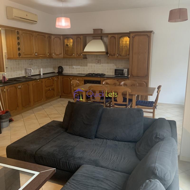 MARSASKALA - A Three-Bedroom Apartment on the second floor. The property consists of an open-plan kitchen, living/dining area, three bedrooms and two bathrooms, and spiral stairs leading to the laundry room. Also, a roof terrace (private) where you could entertain your friends and family. The Apartment is furnished and it is also fully air-conditioned. The main bedroom is en-suite. Also comes with a large storage in the laundry room for storing your shoes or anything you want to store.