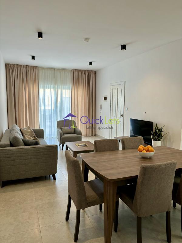 Situated in Zurrieq a five-minute drive away from the airport, pent penthouse is served by an elevator this two-bedroom apartment with one main bathroom and ensuite bathroom offers a modern living experience. The open-plan kitchen/dining/living area leads to a balcony. The open-concept kitchen is equipped with all appliances. Laundry Room is available. Bedrooms are Two Double (one with two single beds and the other with one King-size bed). Tenant must pay an extra 50 Eur per month for common area cleaning and upkeep.