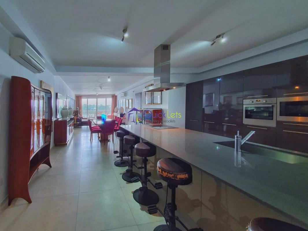 SLIEMA - A luxurious three-double-bedroom with ensuite seafront haven that boasts three spacious double bedrooms, each with its en suite for ultimate comfort and privacy. This exquisite apartment features not only an inviting open-plan kitchen, living, and dining area but also an office space ideal for work or study.