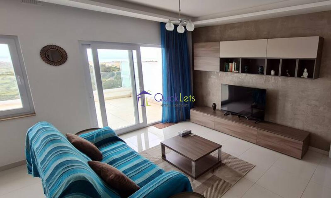 GOZO | NADUR - Here is a Two-Bedroom and Two-Bathroom (one ensuite) Luxuriously Finished Penthouse located in the lovely village of Nadur. It has a modern finished and fully equipped kitchen and open plan boasting natural light leading to a large terrace with the most exceptional country and sea views. This Penthouse also comes with a one-car lock-up garage for an additional cost of 100 Euros Per month. No Pets are considered.
