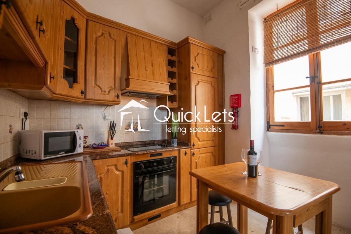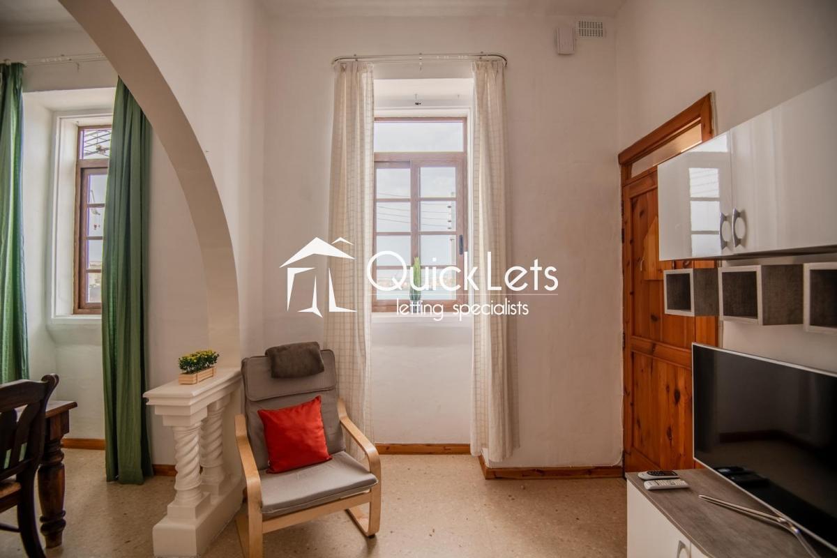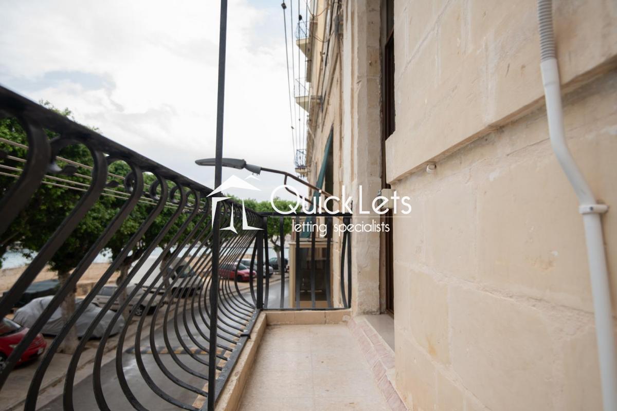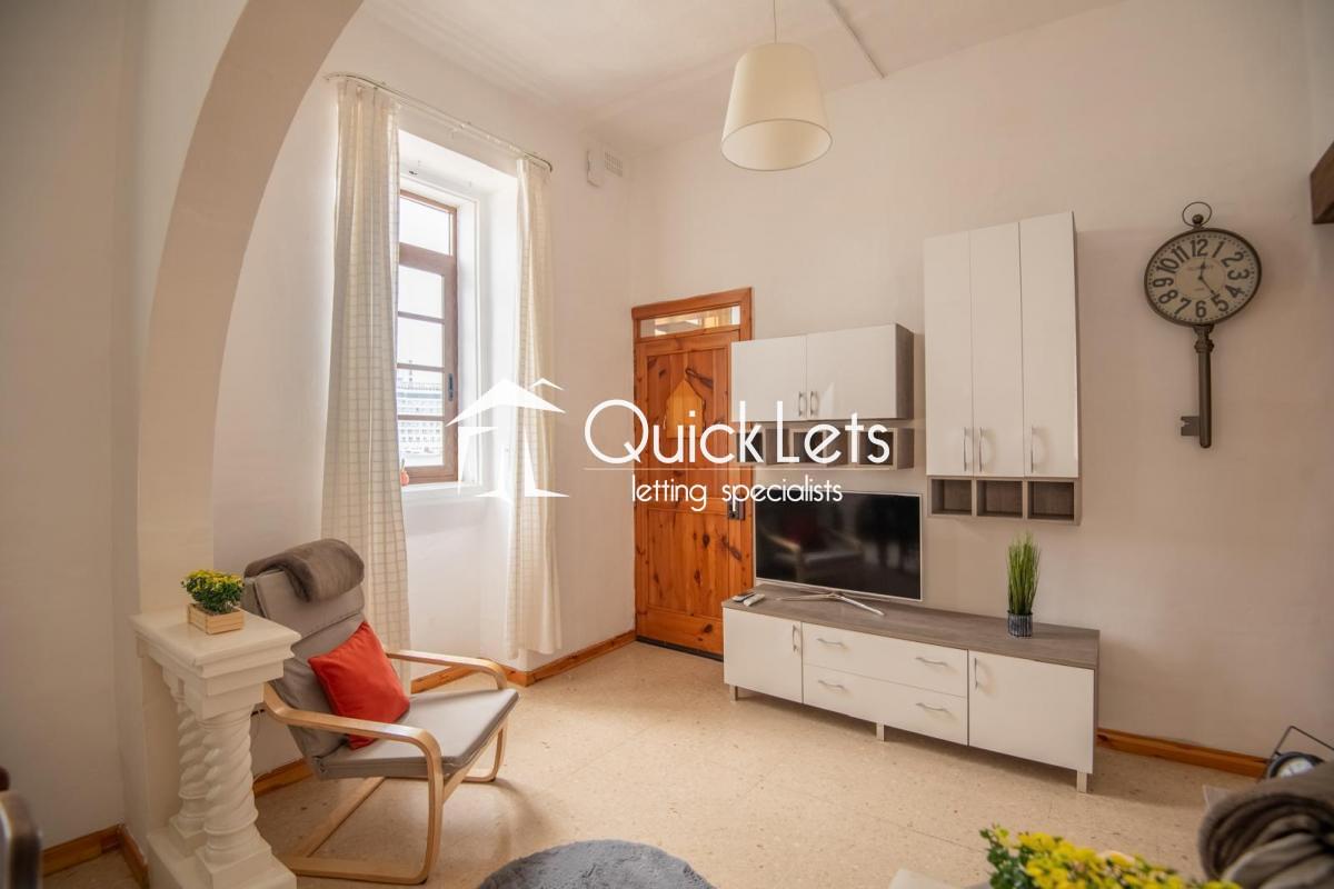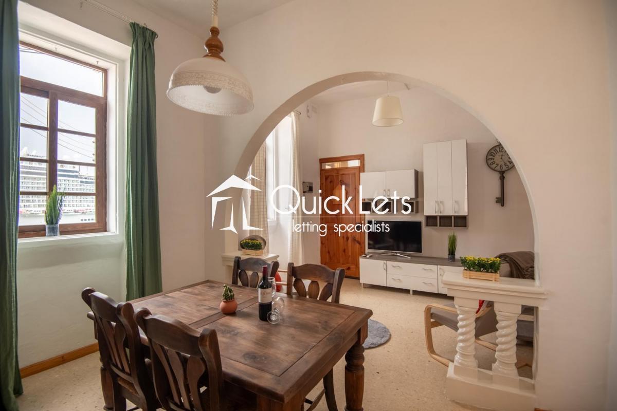 ISLA - Seafront, two-bedroom one-bathroom apartment. The property offers a living area (with A/C) and a fully equipped kitchen, one double bedroom (with A/C) and one single (with a portable A/C), in a block of two on the first floor. Overlooking Valletta, the property has views from all rooms and is fully furnished and available to rent immediately.
