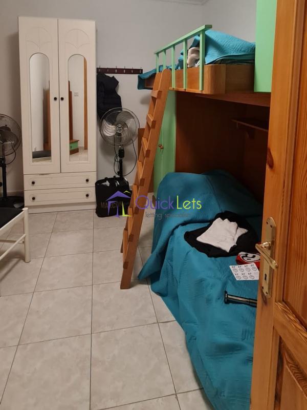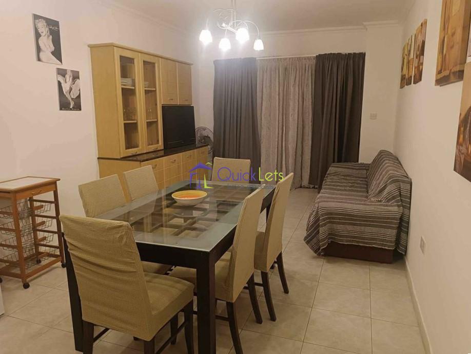 BUGIBBA - Cozy three-bedroom apartment in the heart of Bugibba. Have an open plan fully equipped kitchen/ dining and living area leading to the front balcony. Main bedroom with ensuite and two twin single beds bedrooms-one with a small balcony. The first floor. Served with a lift. Few meters away from the bus stop, pharmacies, supermarkets, and other amenities.