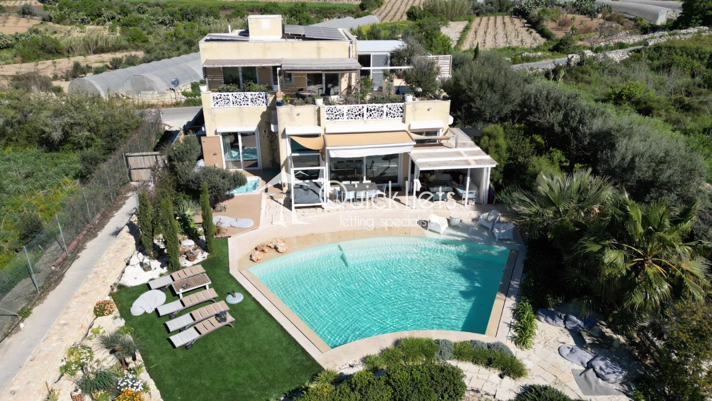 MGARR - Experience the pinnacle of luxury in this one-of-a-kind five-bedroom, six-bathroom farmhouse in Mgarr, where elegance meets tranquility. Nestled within lush gardens, the property boasts a private driveway and ample open parking, offering both convenience and exclusivity.