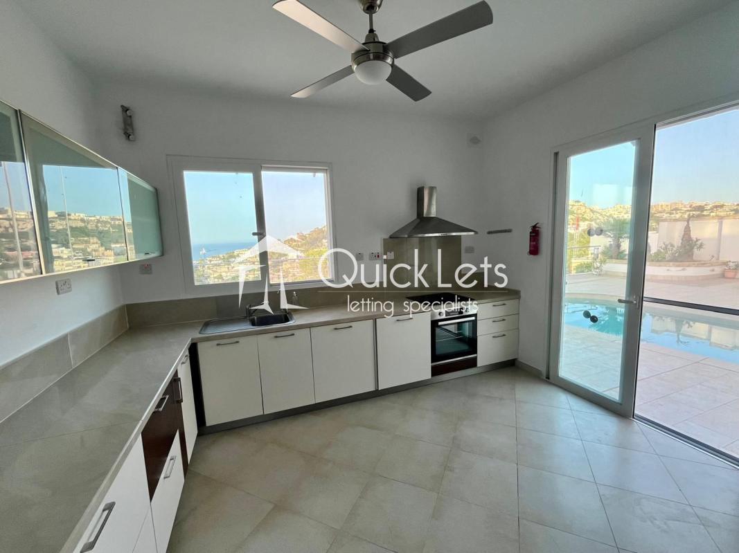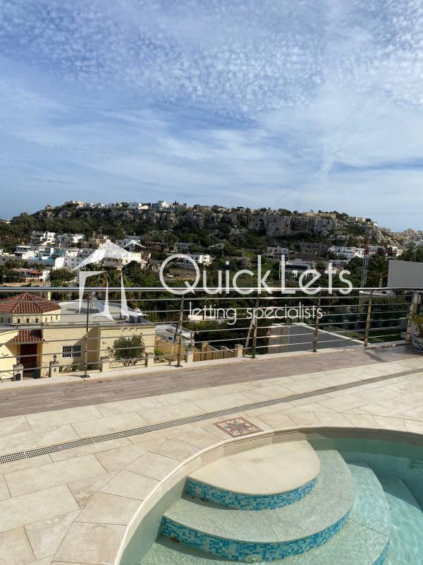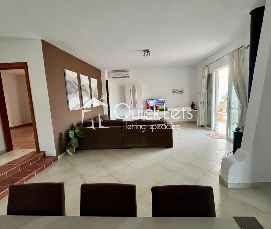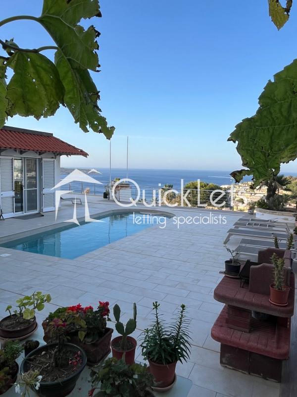MELLIEHA - Semi-detached villa situated in one of the most sought-after areas of Santa Maria Estate in Mellieha. Comprises a fully equipped kitchen, a separate dining room area, and a spacious living area overlooking the pool and garden area, three very comfortable bedrooms, two bathrooms, and a yard with a pool area and spectacular sea views. Spacious yard ideally for BBQ and entertainment area. One car space is included and the property is pet-friendly.