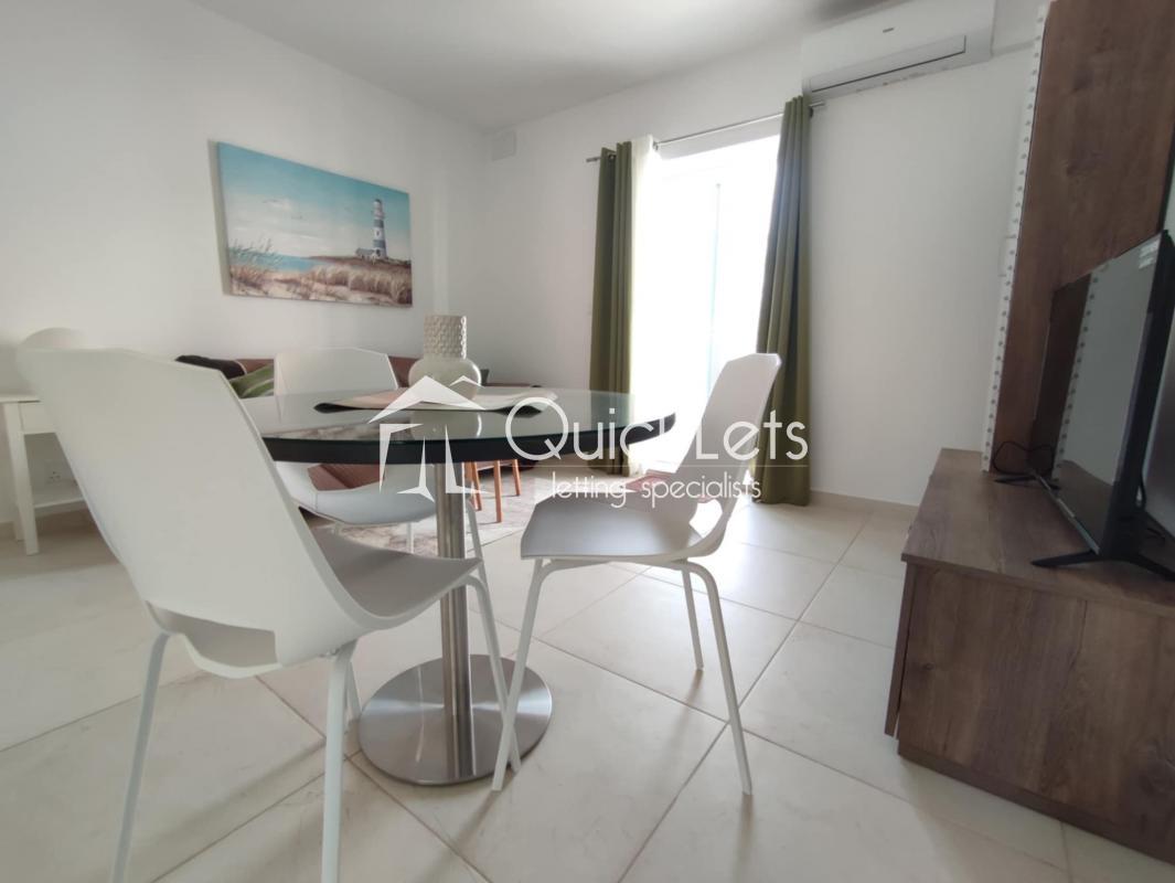 XEMXIJA - It has a squarish layout. Open-plan sitting and dining with LED TV. Fully equipped kitchen with dishwasher, induction hob, oven, and microwave. Spacious one double bedroom with plenty of storage (bed is a storage bed too). A bathroom with washing machine and tumble dryer. A good-sized balcony is accessible from the bedroom and the living room with country views. Situated in a quiet area very close to the Xemxija promenade and the main bus route and shops.