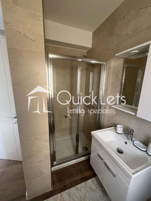 The property features a square-shaped layout with an open-plan living and dining area equipped with an LED TV. The kitchen is fully equipped and includes a dishwasher, induction hob, oven, and microwave. There is a spacious double bedroom offering ample storage, including a storage bed. The bathroom is fitted with both a washing machine and a tumble dryer.