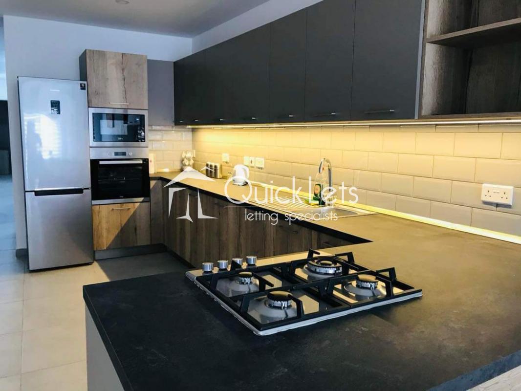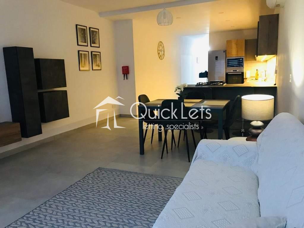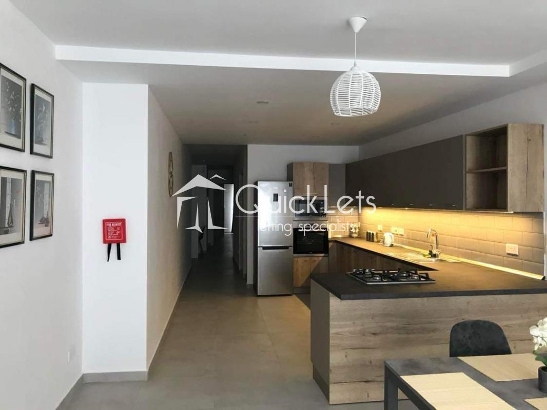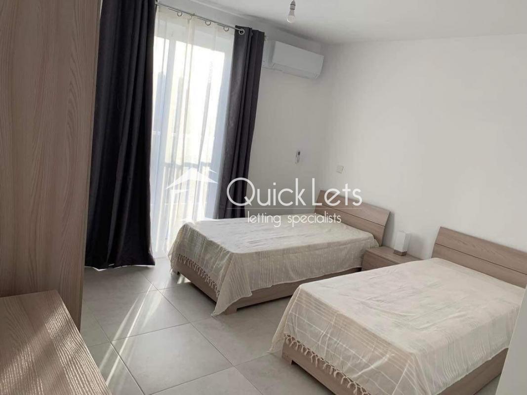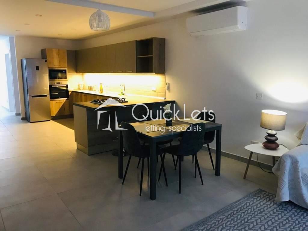 SAN GWANN - A modern apartment finished to high standards, situated in a residential area yet close to all amenities. The property comprises a spacious open plan with a fully equipped kitchen, living area, dining area, and a front balcony. It has a main bedroom with an en suite, a main bathroom, and a spare bedroom with two single beds.