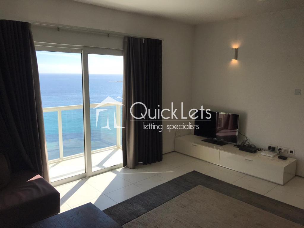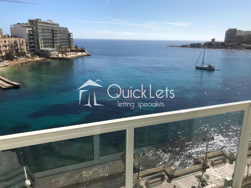 ST. JULIAN'S - A Superb apartment situated on the seafront comprising two bedrooms and two bathrooms with the apartment going all the way to the other side of the road. The apartment has a back balcony and spacious living area and is equipped with the best appliances.