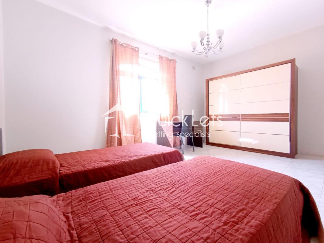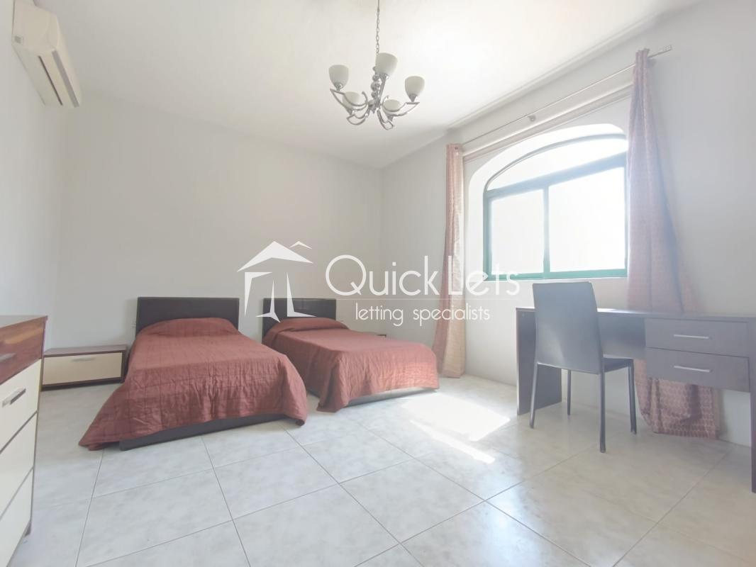 GZIRA – A private bedroom with two single beds is on the market for rent. The apartment has a main bathroom, a kitchen/dining and living area in a large open plan layout, and a front Balcony with a space for BBQ.