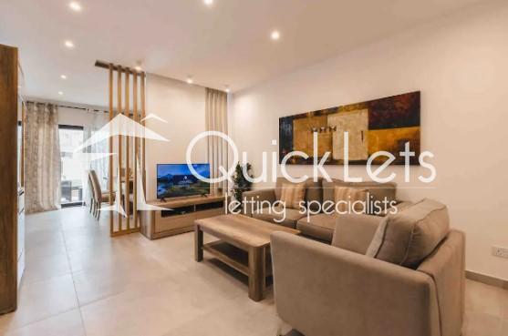 SWIEQI - Welcome to this charming three-bedroom, two-bathroom apartment nestled in the heart of Swieqi, one of Malta's most sought-after residential areas. Upon entering, you're greeted by a spacious living area, tastefully decorated with modern furnishings, perfect for relaxation and entertainment, with ample space for a comfortable sofa set, coffee table, and entertainment center.