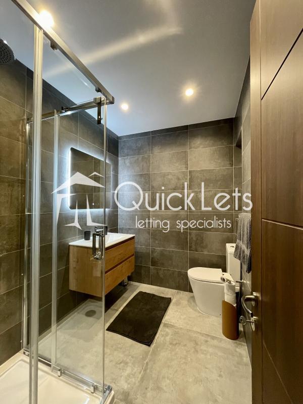 This modern property comprises an open plan kitchen/living/dining upon entrance, two double bedrooms, two bathrooms, a laundry/box room, and has front and back balconies.