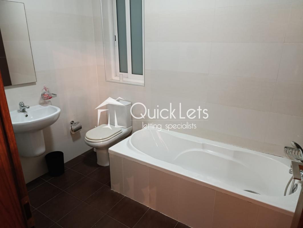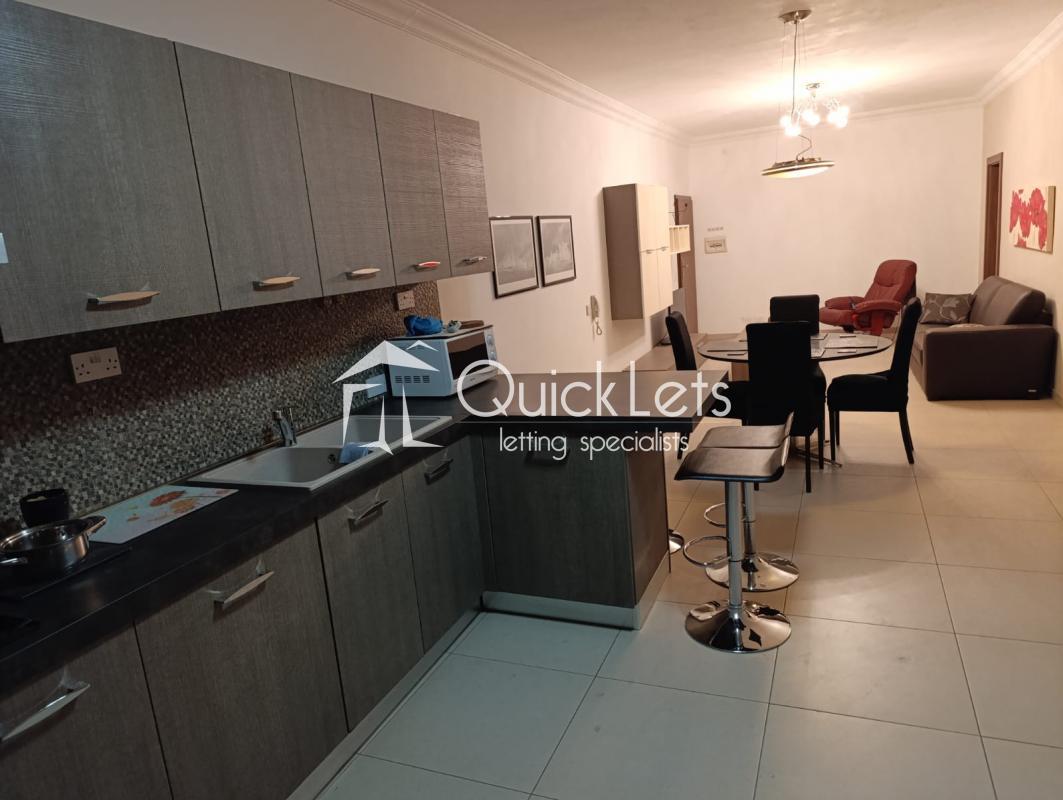 SLIEMA - Spacious apartment with two bedrooms and two bathrooms, including a master suite with its own bathroom. The other bathroom is equipped with a bathtub equipped with a tumble dryer. The apartment has two balconies, perfect for enjoying the outdoors. The fully equipped kitchen as well as a dishwasher, is open to the dining area and living room, creating a bright and friendly living space. Additionally, the apartment comes with an underground garage and is located in a highly sought-after area.