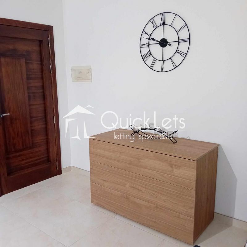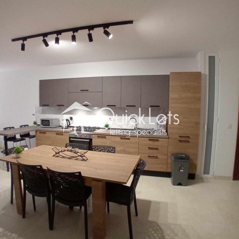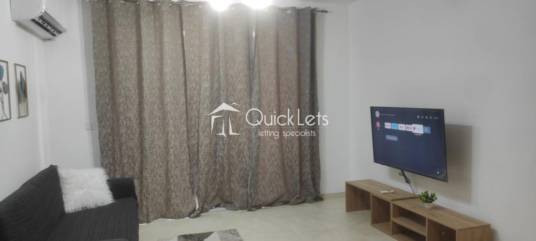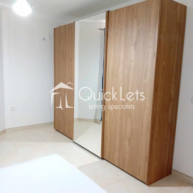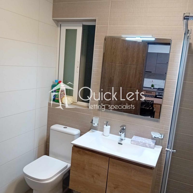 The two-bedroom apartment consists of an open plan with a kitchen, dining room, living room, and terrace. There is a bathroom, a master bedroom with a double bed and ensuite (bathroom), and a second bedroom with two single beds. The apartment is located in a nice area, near butchers, supermarkets and restaurants