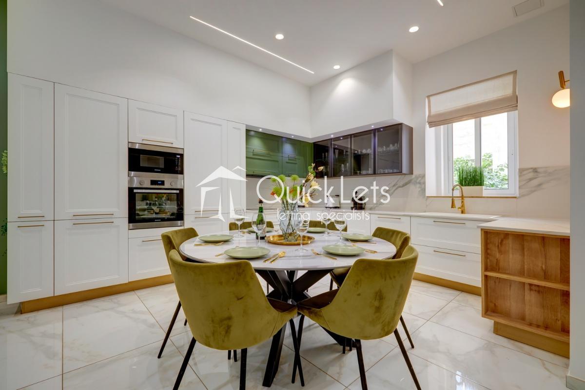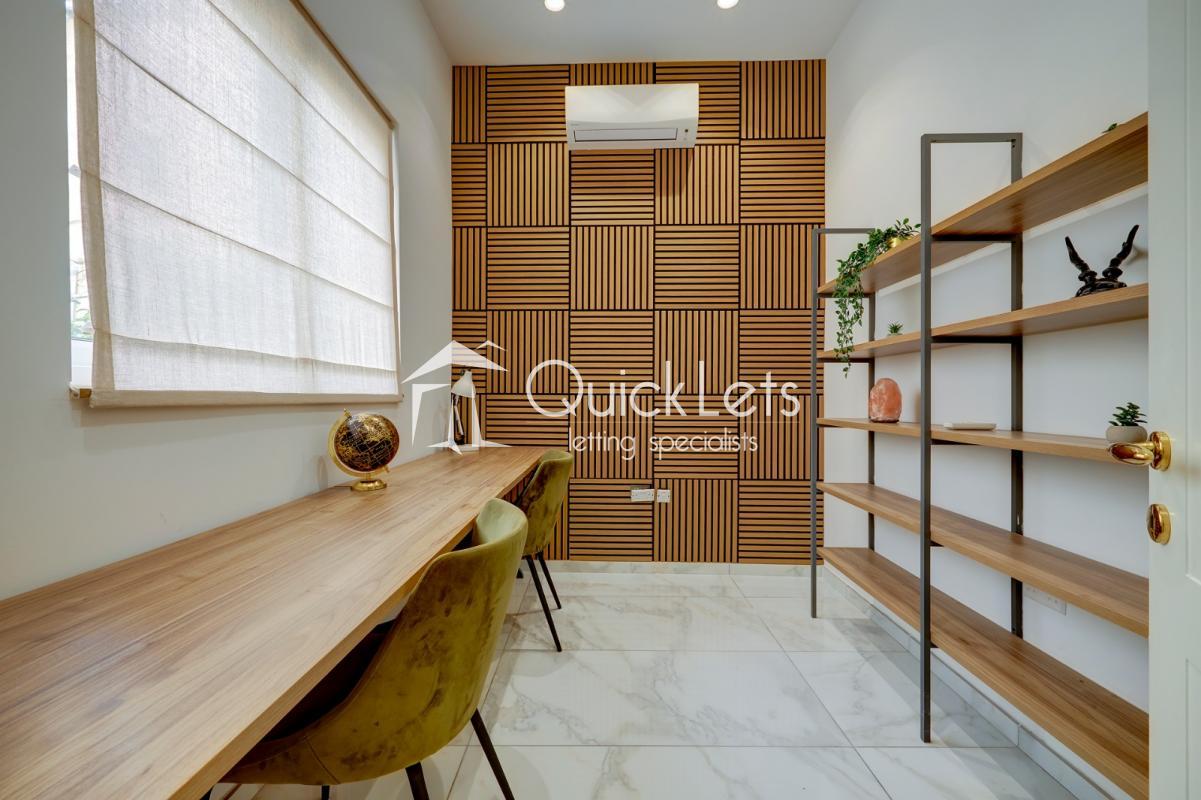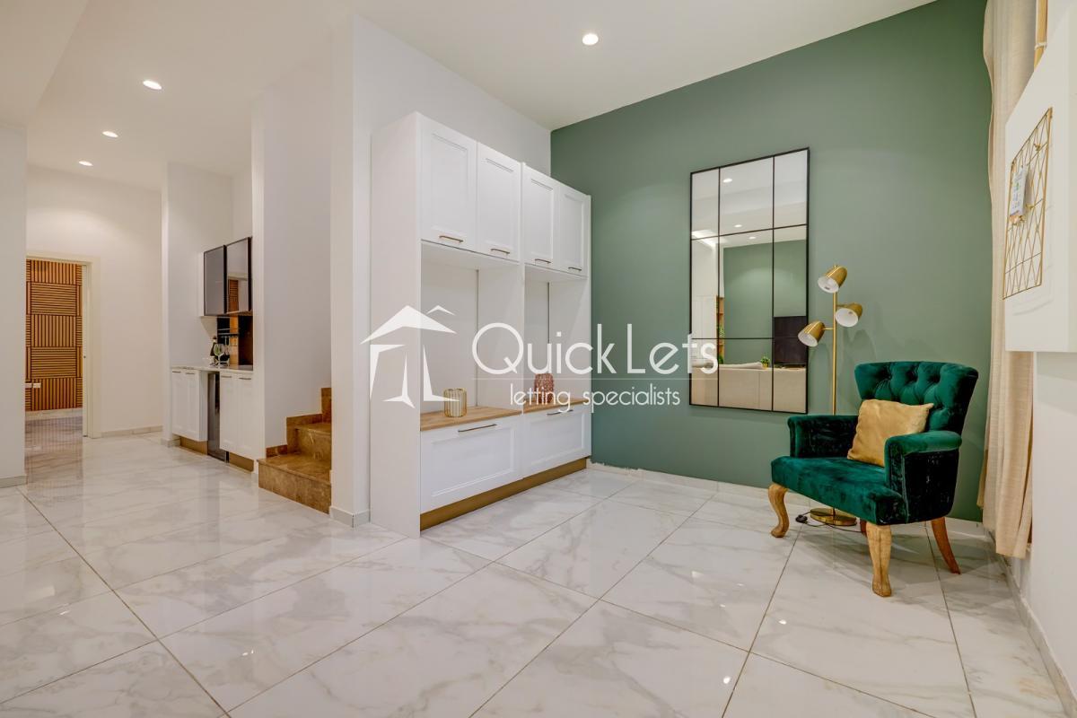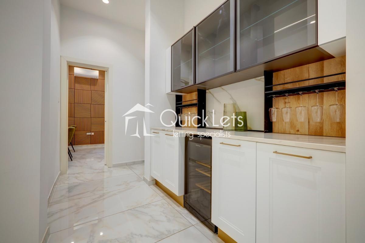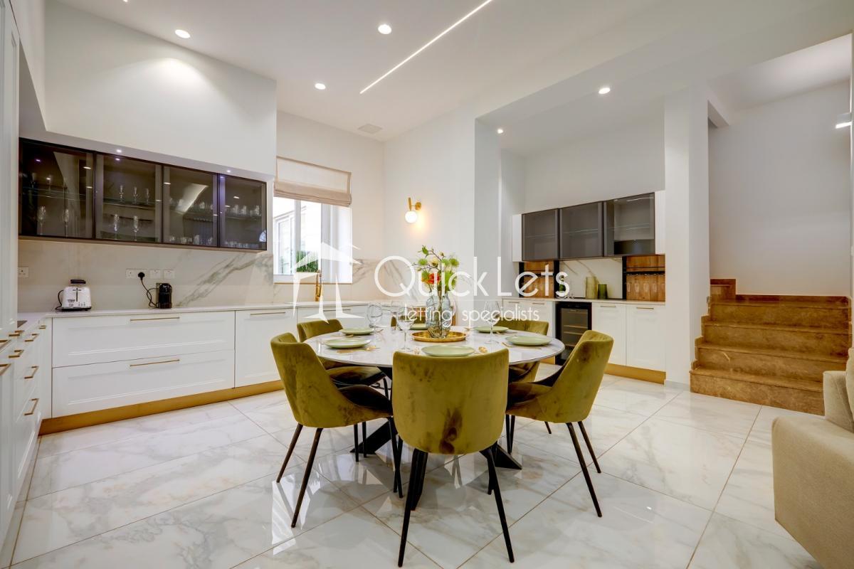 SLIEMA | This recently renovated, ultra-modern 5-bedroom, 5-bathroom townhouse is situated in the highly sought-after area of Sliema. The ground floor boasts a spacious open-plan kitchen, living, and dining area, complete with a sleek wet bar and wine cooler—ideal for entertaining, along with a spare room which has been converted into an office space.