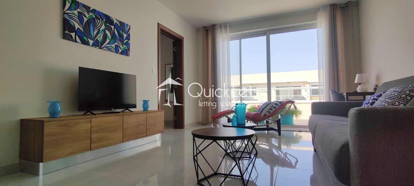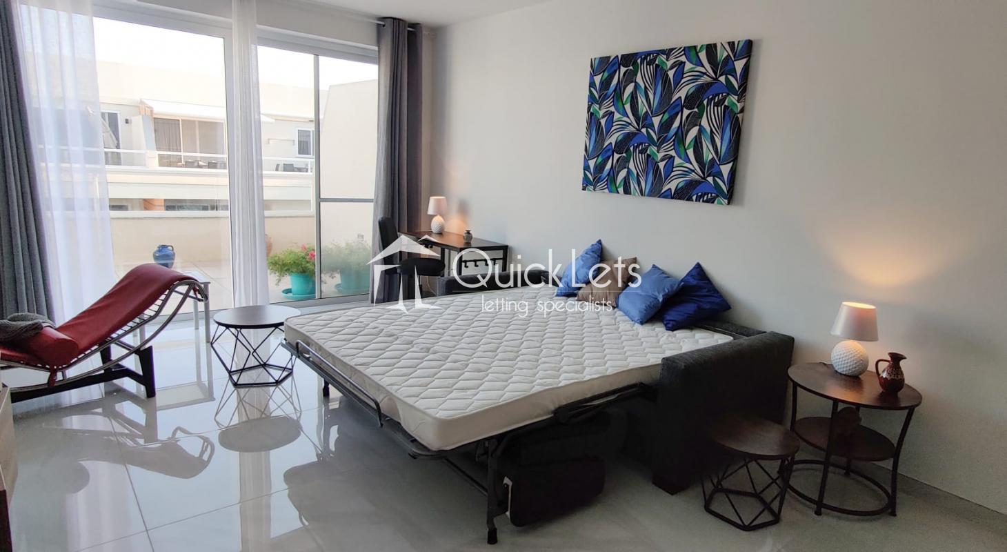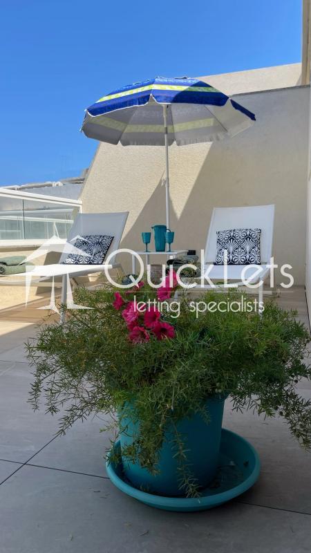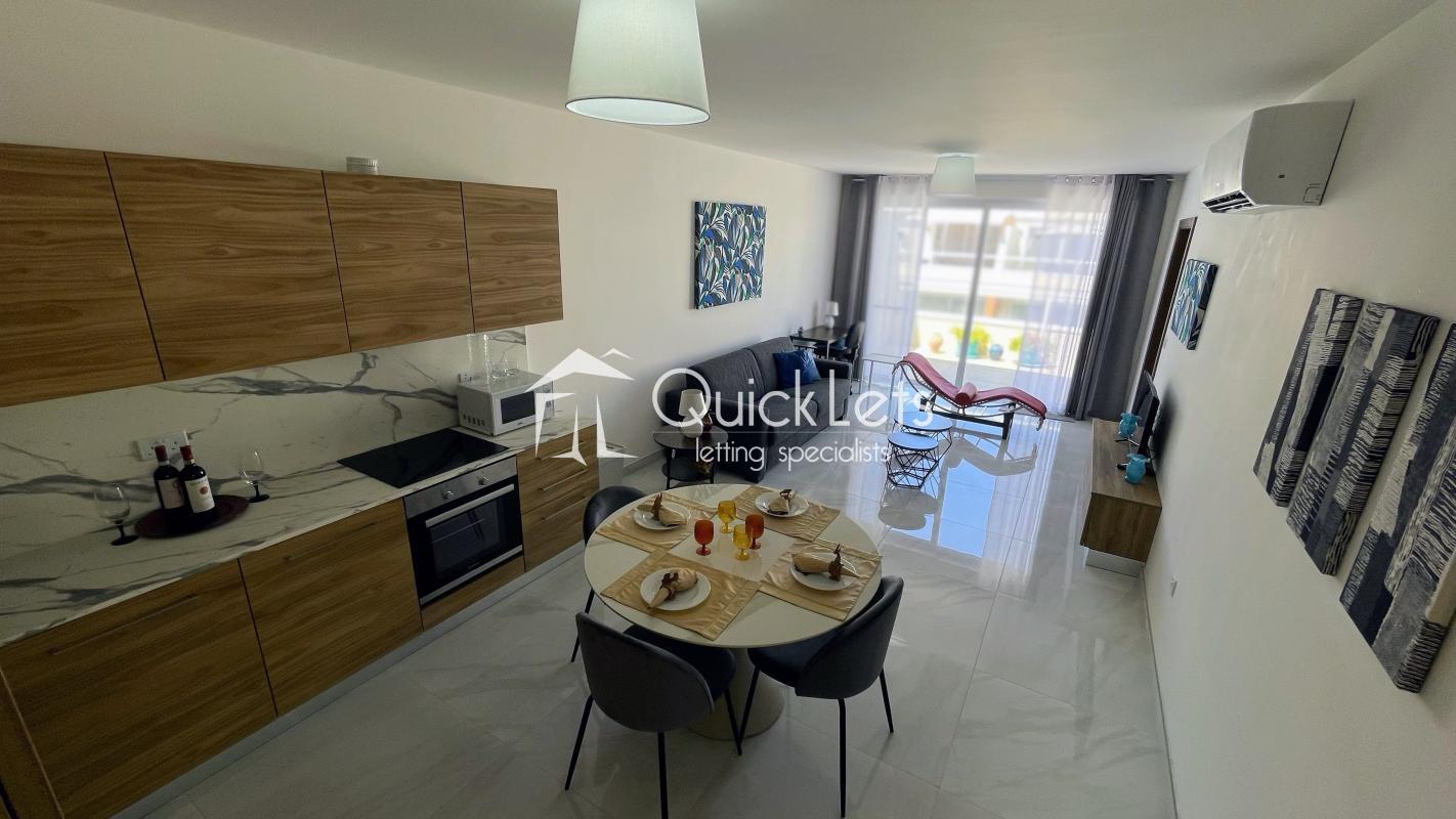 QAWRA | A brand new (2024) penthouse with a sun terrace, a corner away from the great Qawra promenade and swimming zone. Spacious double bedroom with ensuite, large and bright open plan with a great sofa-bed, kitchen, bathroom, and boxroom. Optional garage is available at an extra cost.