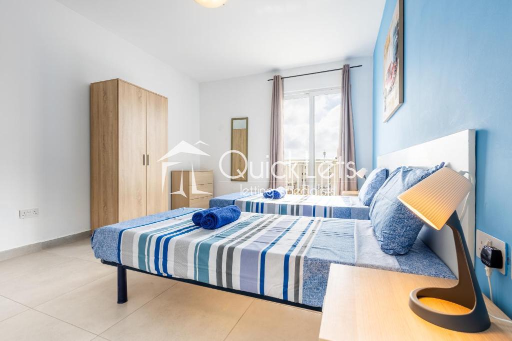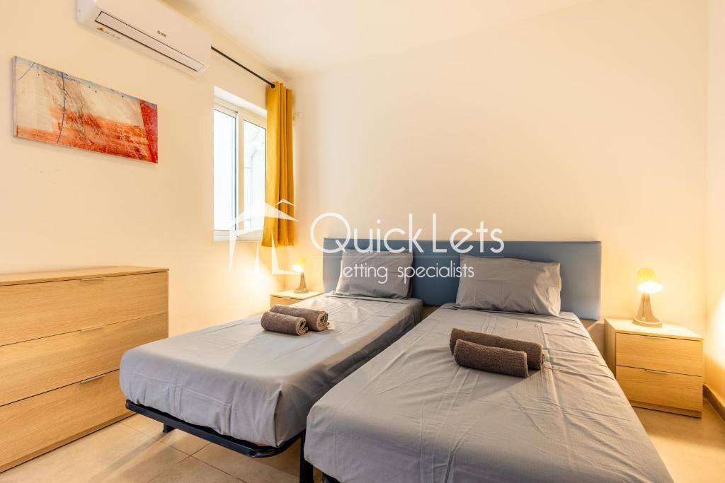 QAWRA - Brand new (2023) two-bedroom square layout apartment, located in a quiet area of Qawra, close to all daily amenities. The property consists of an open-plan kitchen/living/dining, two bedrooms, one main bathroom equipped with a shower, and a good-sized front balcony. The main bedroom is equipped with two single beds and an en suite with a shower. The second bedroom is also equipped with two single beds. The property is fully equipped and ready to move in. The kitchen is equipped with a dishwasher as well. The property is fully air-conditioned. It is on the fifth floor, served by a lift. Worth viewing.