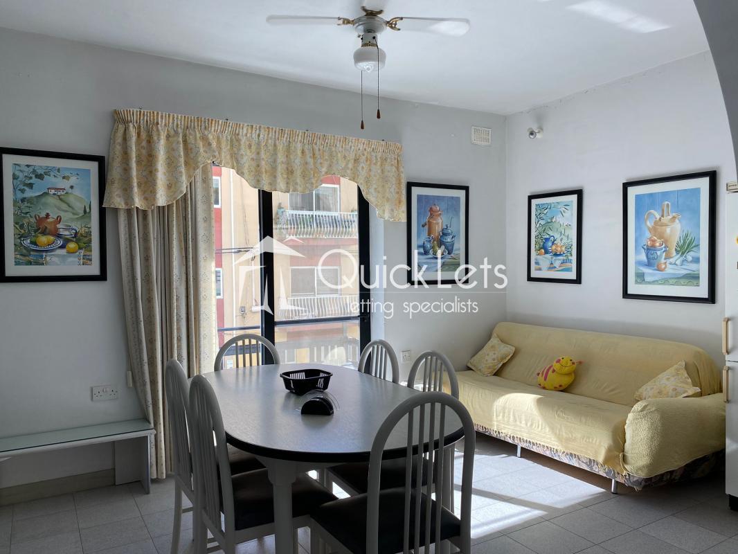 QAWRA - cosy two bedroom apartment in Qawra. It includes an open-plan kitchen, dining, and living area, one bathroom, front balcony & spacious back terrace. It's fully furnished & equipped close to the promenade & all local amenities.