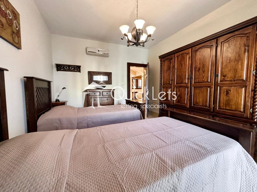 Inside, the apartment is designed for modern living with a bright and airy open-plan layout. You’ll find two cozy bedrooms: a lovely master with a plush double bed and a second room featuring two inviting single beds—ideal for family or guests. With two stylish bathrooms (one with a relaxing bathtub and the other en-suite with a sleek walk-in shower), convenience is at your fingertips.