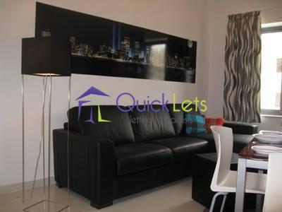 Large and bright one double bedroom apartment situated at first floor level with modern common areas.... this modern designed apartment is situated around spinola bay, with front entrance leading on to kitchen living dining with chaise long sofa and an additional sofa bed, fully equipped kitchen, split level stairs on to hall leading to bathroom and large double bedroom. Fully airconditioned, Wifi Internet, Iron board and all amenities needed plus high ceilings.