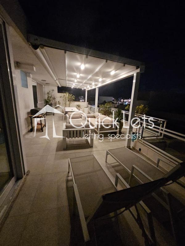 ST JULIAN'S - This is a stunning, fully furnished and spacious three-bedroom penthouse in a prime location just off Spinola Bay and close to Portomaso Marina. The penthouse enjoys a well-finished, comfortable open plan living-kitchen-dining area, a front terrace with stunning outdoor furniture and unobstructed views, two sizeable double bedrooms and a study room (which can be converted to a double bedroom), a utility room, a main bathroom, an en-suite shower, and back balcony in the main bedroom. The penthouse is fully air-conditioned and highly finished and furnished.