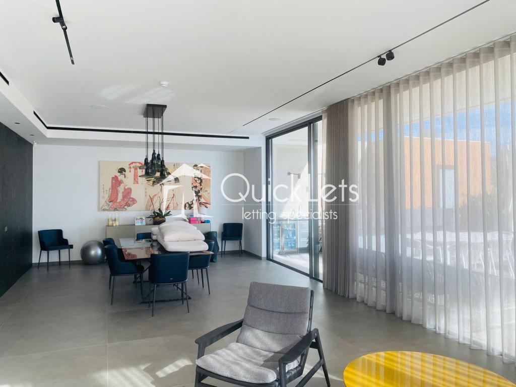 Level Four – The kitchen and Dining Area, in this luxurious villa, encompassing the kitchen and living room, is a fusion of elegance, comfort, and functionality. Large windows invite ample natural light, creating an inviting atmosphere. The living area offers a perfect balance of style and functionality in a harmonious setting. Sliding glass doors lead to a spacious terrace with a private outdoor pool, that offers a secluded oasis with breathtaking views of Malta, adjacent to this, the barbecue zone features a high-quality grill, and ample seating, creating an ideal setting for outdoor entertaining.
