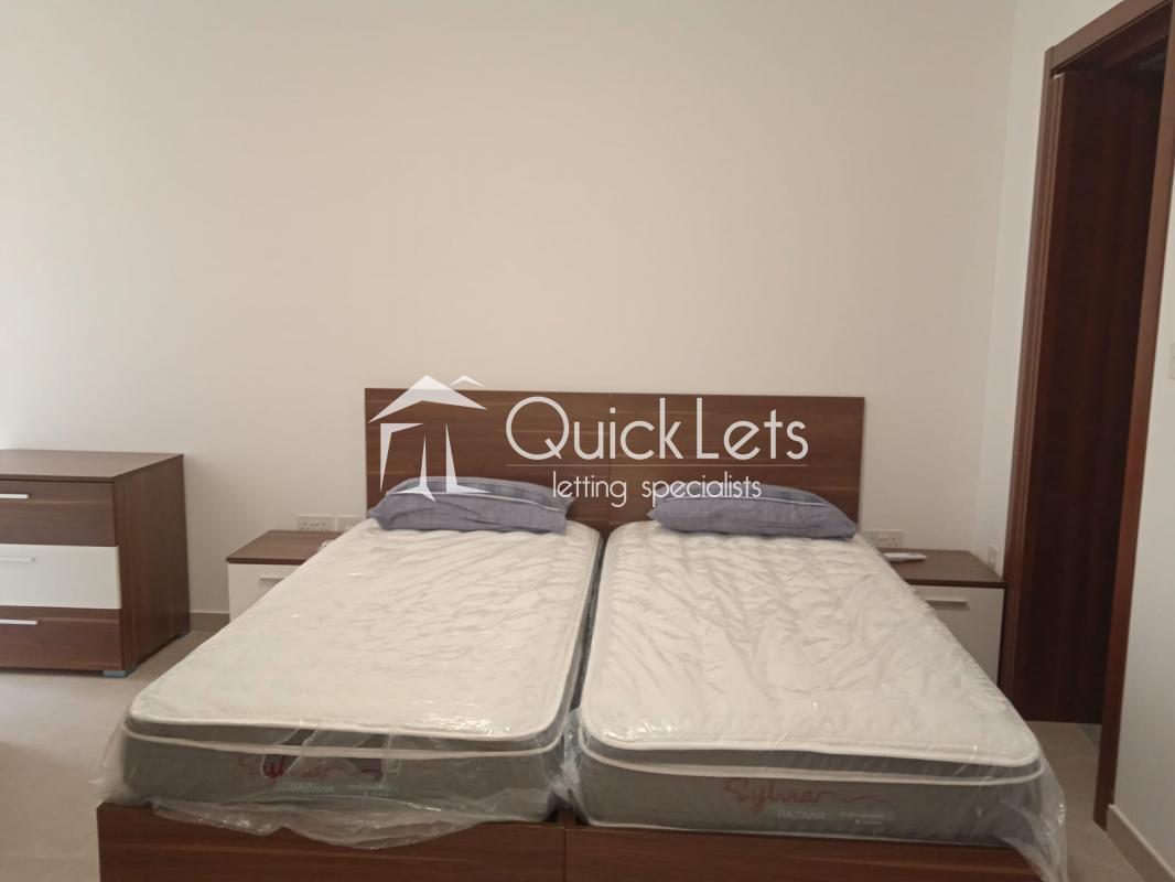 Discover this modern and brand-new two-bedroom apartment, fully furnished and ready to move in. Each bedroom features two single beds. The apartment includes two spacious bathrooms with large showers and an open-plan living area with a fully equipped kitchen (brand-new appliances: oven, dishwasher, microwave, induction hob, and kettle). There are two air conditioning units—one in the living area and one in the master bedroom, with pre-installed connections in the second room. The bright living room offers a triple sofa and an LED TV. Every room has access to a balcony. Located in a quiet area of Birkirkara, just five minutes from Mater Dei Hospital, 10 minutes from the University of Malta, and well-connected by bus to the seafront and other amenities.