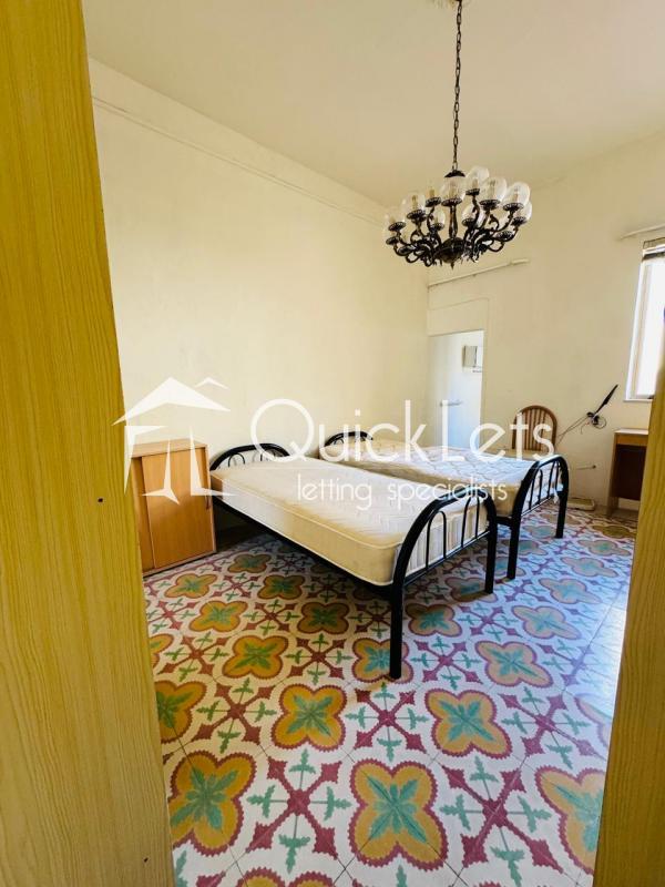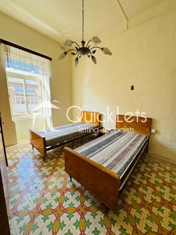 This is a massive maisonette/townhouse with its own entrance. It has a beautiful Maltese character and Maltese tiles. The entrance is on the ground floor and on the first floor you find an open kitchen/dining and living area plan leads to a back balcony and access to the private whole rooftop. The bedrooms are very spacious and have loads of storage. Two single beds in each bedroom and a main bathroom.