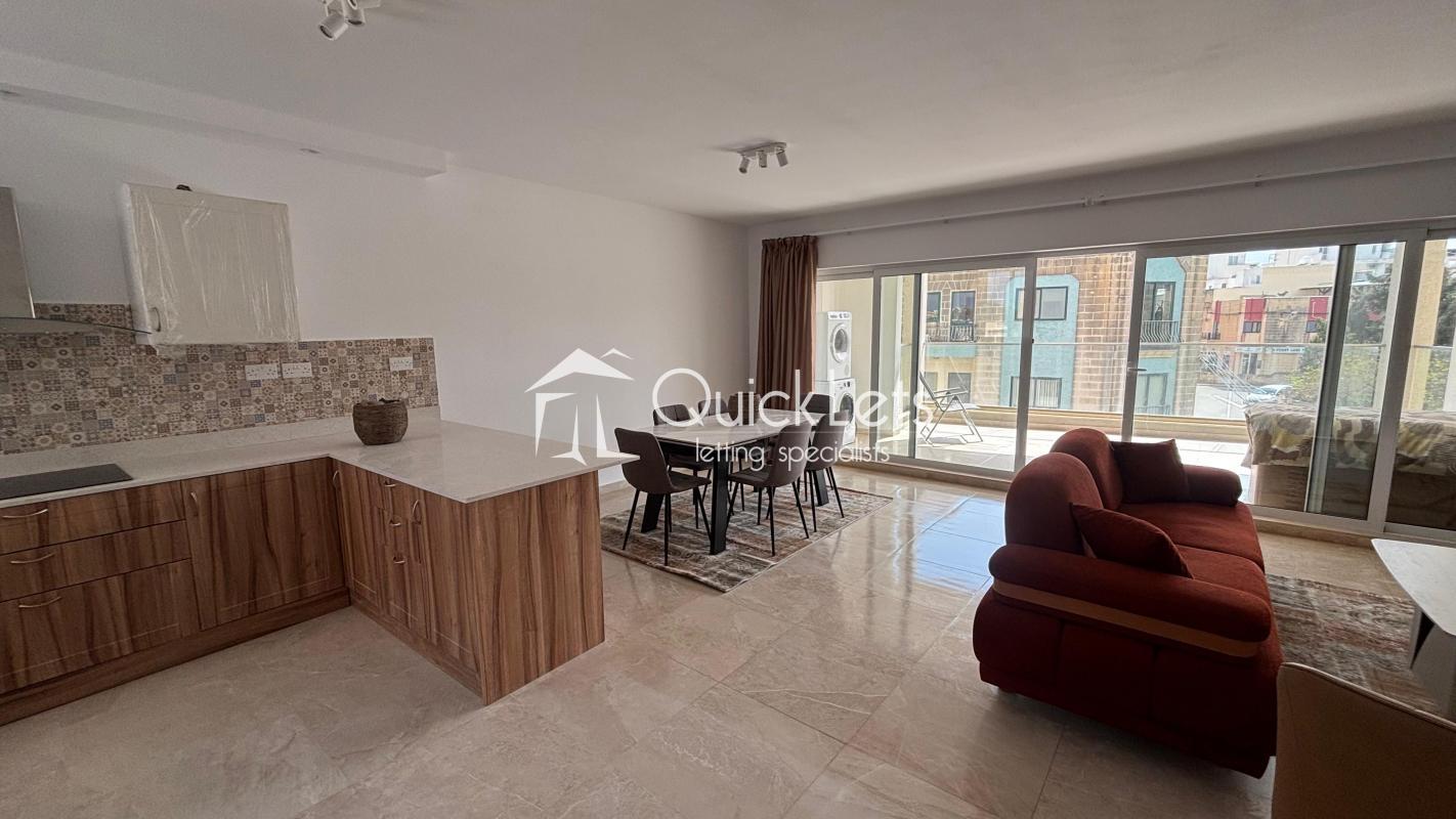 Brand new (April 2026) modern apartment located in a quiet residential area of Swieqi, yet within easy reach of all amenities. This highly finished and fully furnished residence features a very spacious open-plan kitchen/living/dining area that opens onto an unusually large front terrace with outdoor furniture, ideal for outdoor entertaining and relaxation.